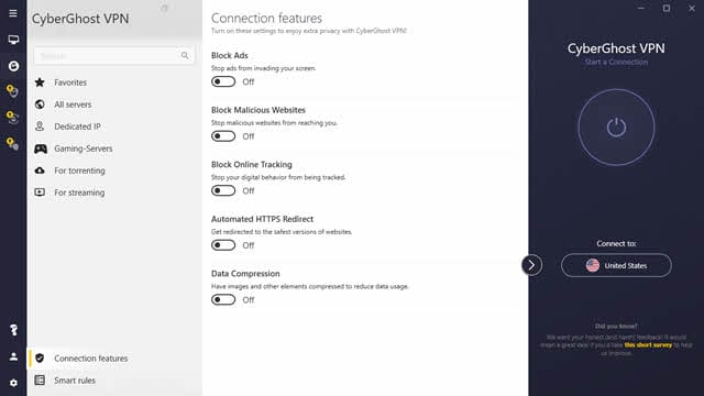 使用位于美国和英国的 加速器 服务器。